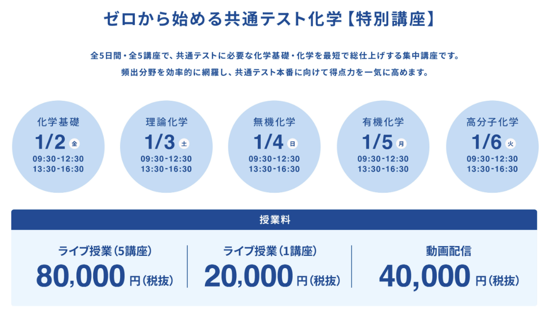 **「初見問題でも自力で対応できる化学力」**を身につける講習です。